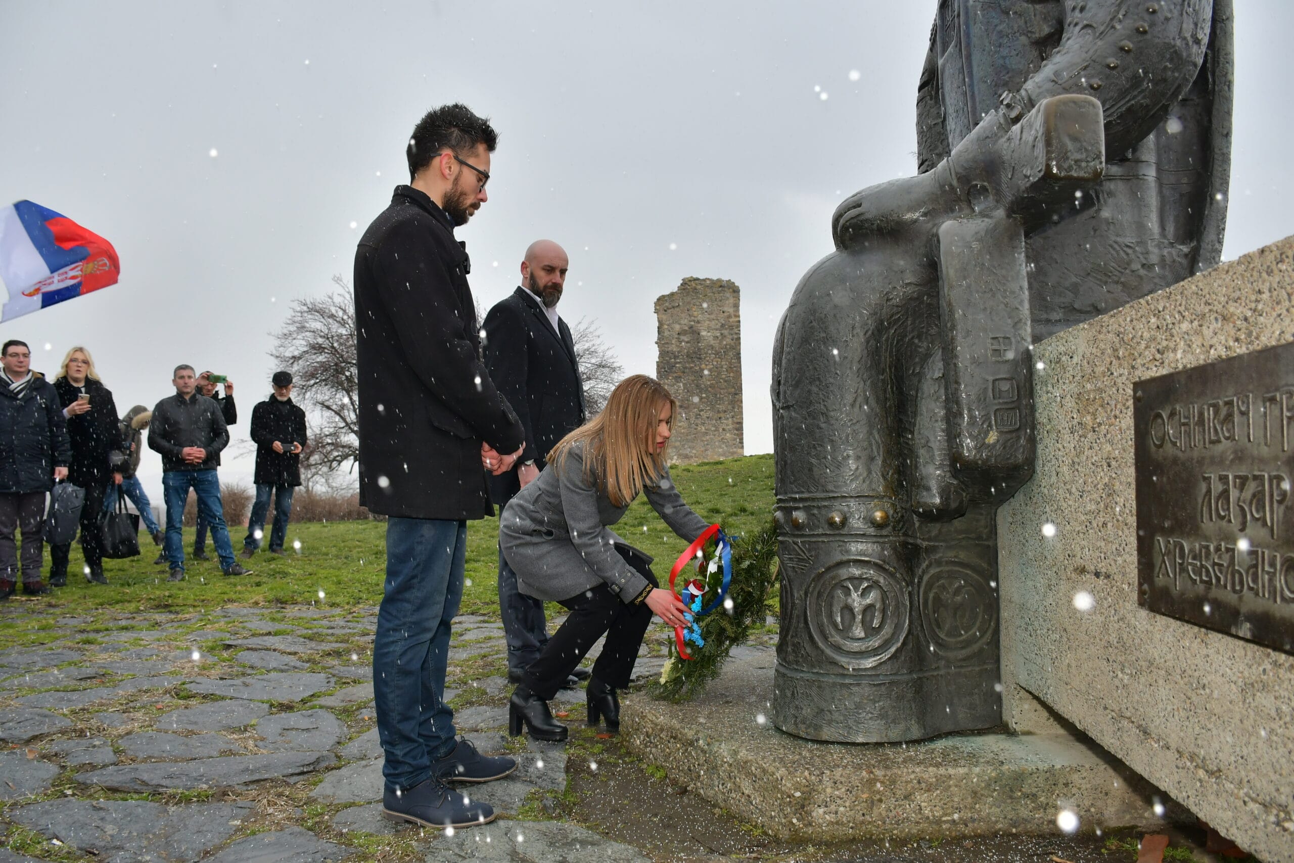 Након одржаног скзпа окупљени чланови Српске странке Заветници положили су венац на споменик кнезу Лазару, уз поруку да ће чувати завет слободе и државности.