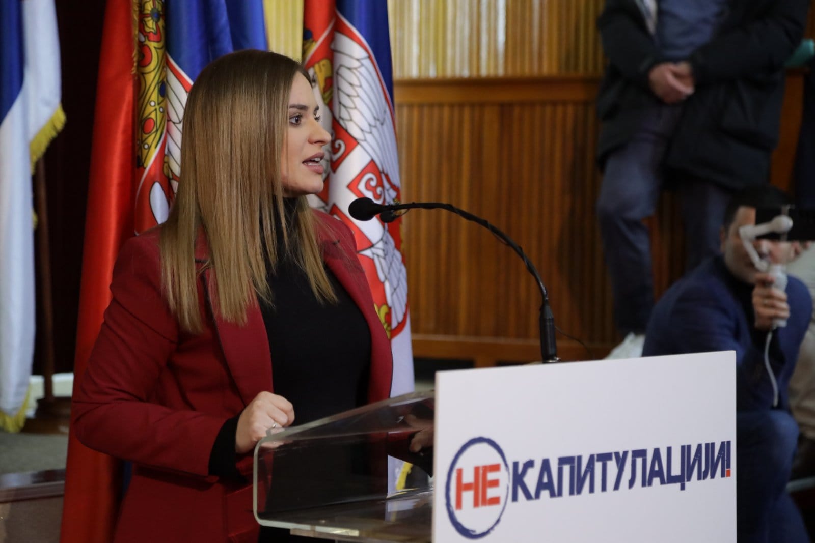 „То је оно против чега су устале странке државотворне опозиције. А са нама је устао и српски народ, који и вечерас овде поручује да никада неће пристати на ултиматум и предају КиМ!“, рекла је Ђурђевић.