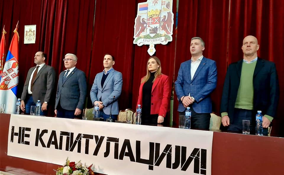 У срцу Шумадије одржана је прва трибина државотворних опозиционих парламентарних странака под називом „НЕ капитулацији! НЕ француско-немачком ултиматуму!“.