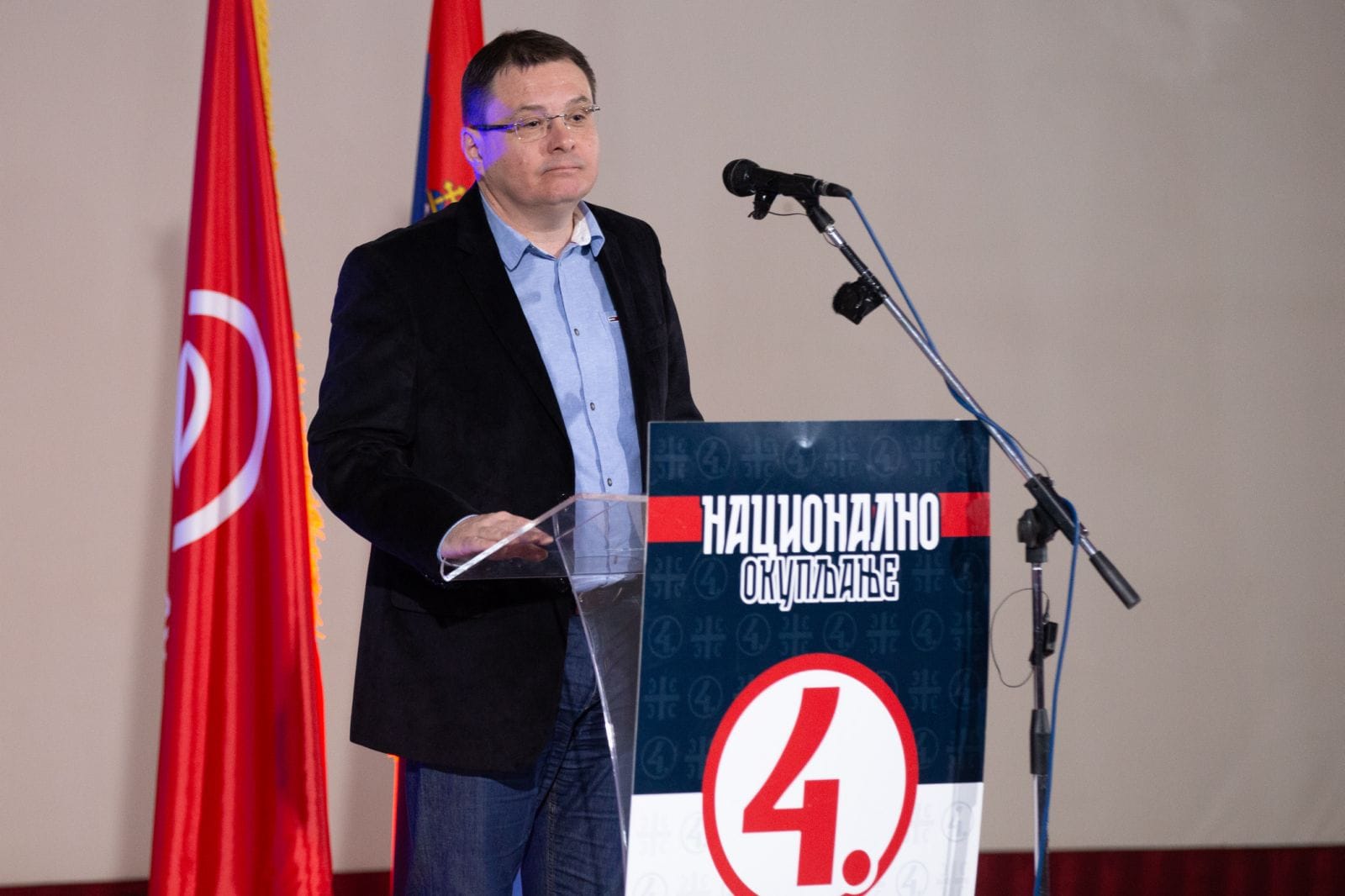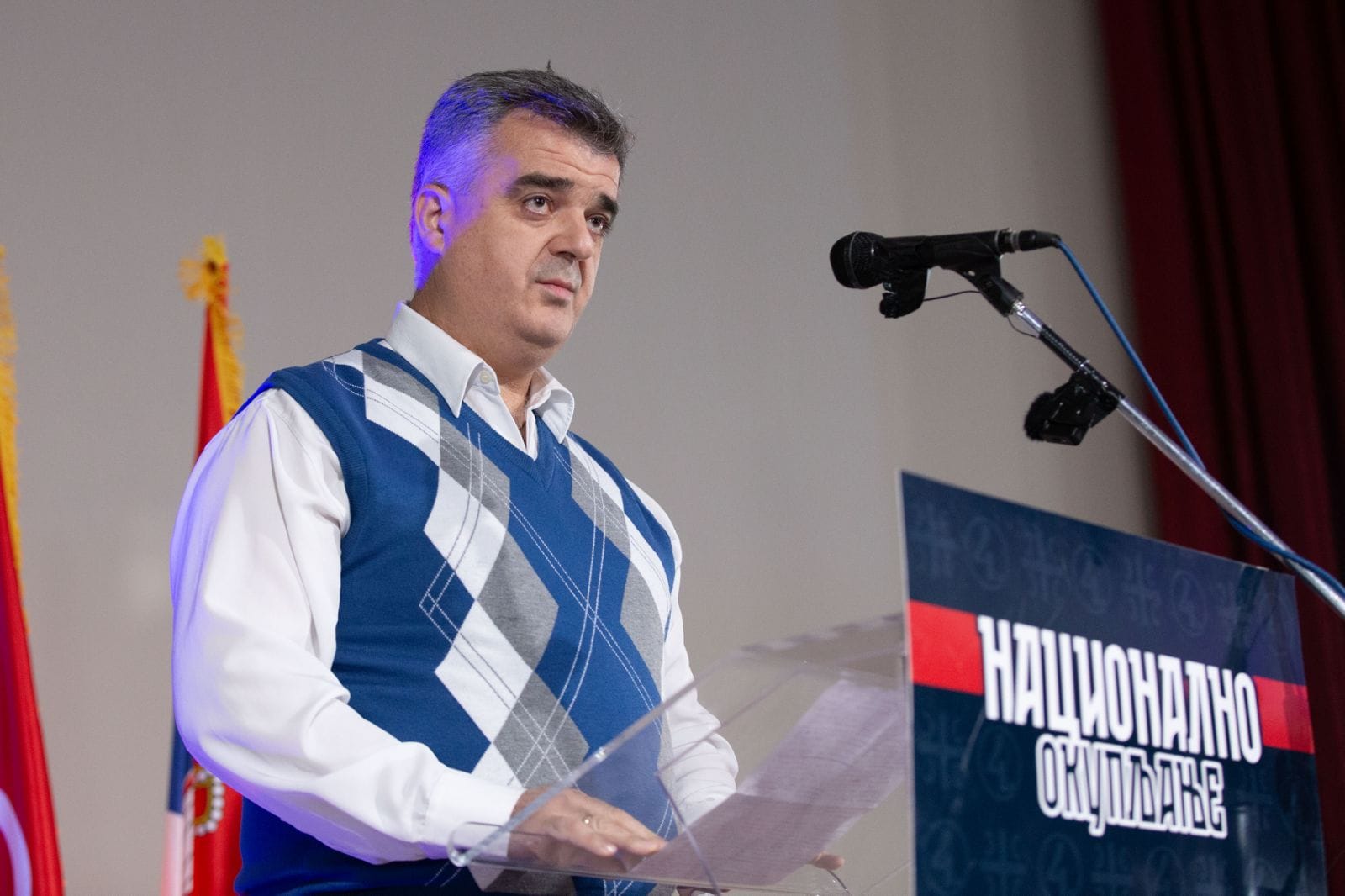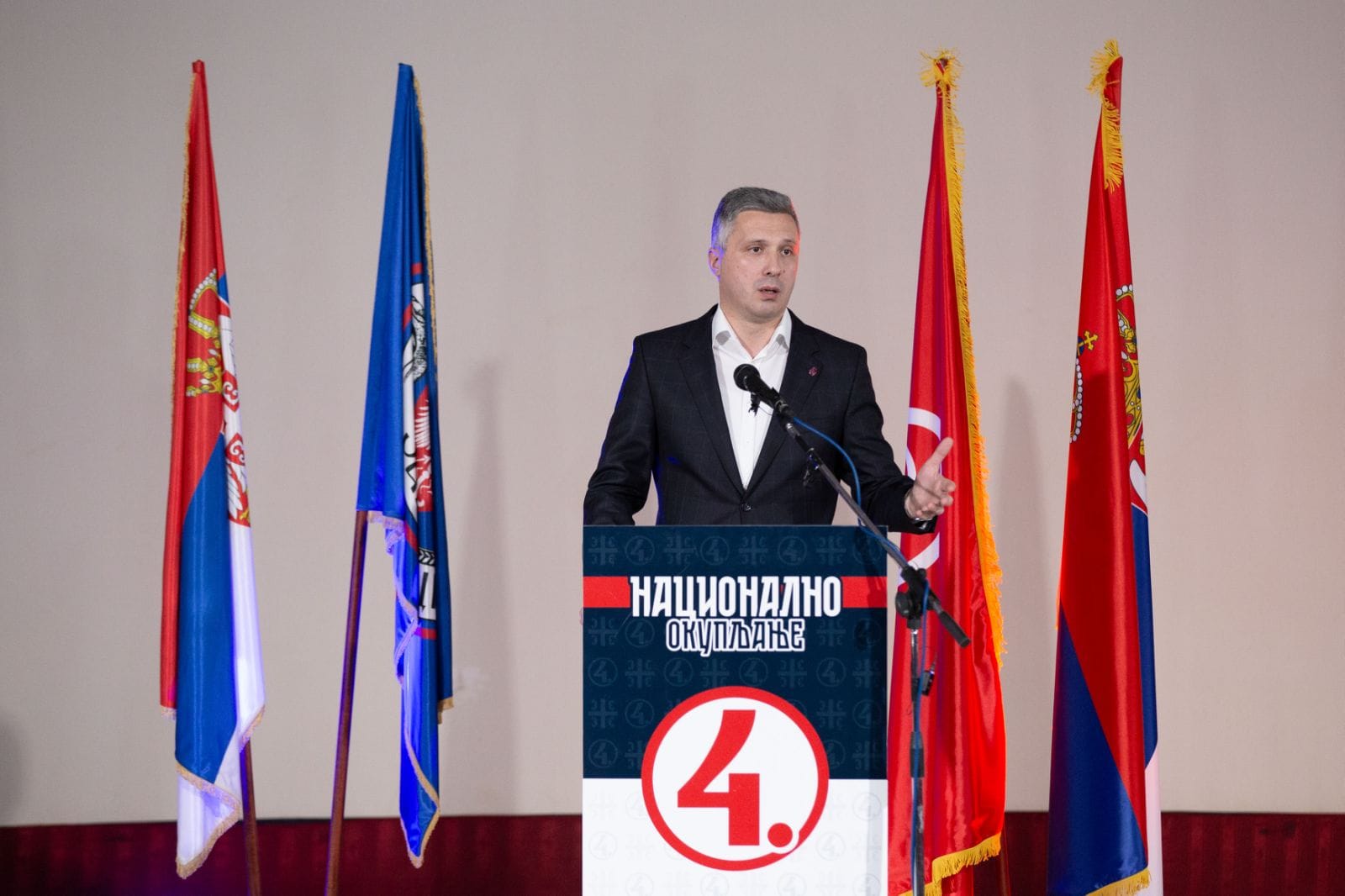 „То исто питање ја постављам нама данас овде, ако Србија није на првом месту, шта је на првом месту у Србији? Европска унија, амерички амбасадор, комора страних инвеститора, ЛГБТ пропаганда, шта је вредност, шта је идеал, шта је смисао? Ко је власт у овој држави и шта се и за шта у овој држави питамо ми Срби? То је једина тема избора 17. децембра. Хоће ли Србијом владати странци, стране компаније, стране банке, страни трговински ланци, страни амбасадори или ћемо се у нашој држави питати и одлучивати ми њени грађани.“